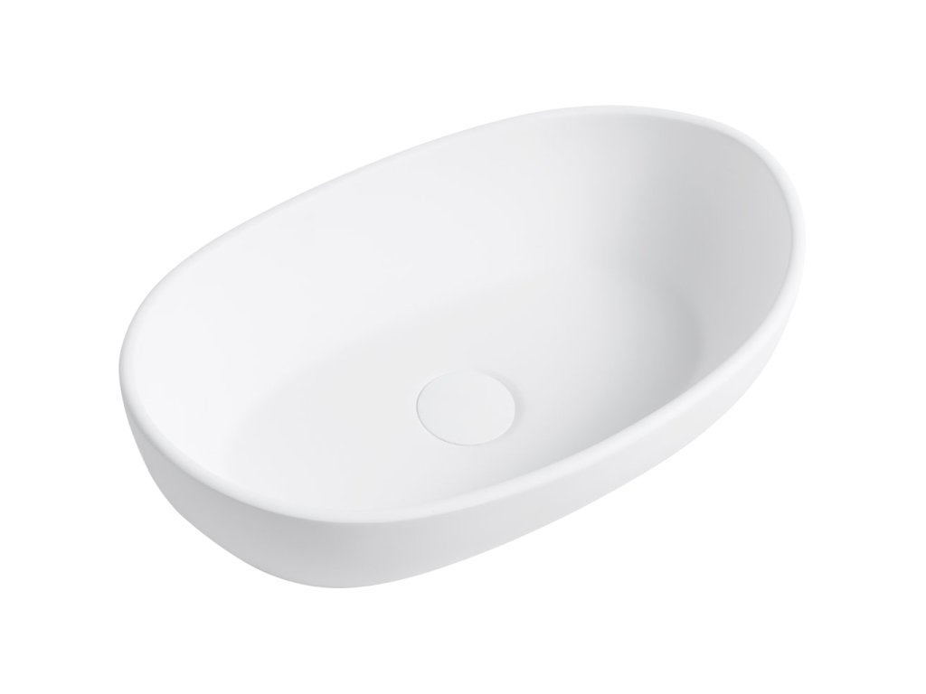 CERANO - Umyvadlo z litého mramoru Persea - na desku - bílá matná - 50x32 cm