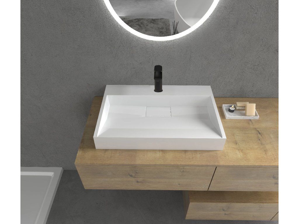 Umyvadlo disponuje otvorem pro instalaci vodovodní baterie. Tato úprava umožňuje elegantní zapuštění baterie přímo do umyvadla, což je ideální pro menší koupelny, protože výrazně šetří prostor. Zároveň se díky tomu snadněji udržuje čistota v okolí umyvadla, jelikož zde nejsou žádné výčnělky či spoje, kde by se mohla usazovat špína.