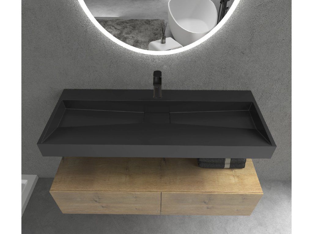 CERANO - Umyvadlo z litého mramoru Vita - nástěnné i na desku - otvor pro baterii - černá matná - 100x46 cm