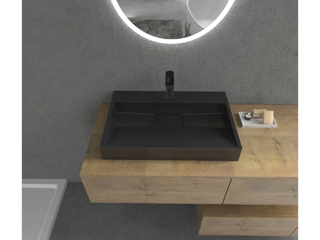 CERANO - Umyvadlo z litého mramoru Vita - nástěnné i na desku - otvor pro baterii - černá matná - 70x46 cm