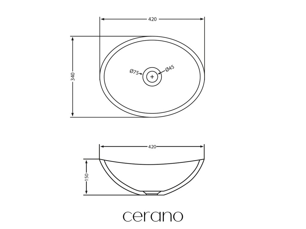 CERANO - Umyvadlo z litého mramoru Zara - na desku - černá matná - 42x34 cm