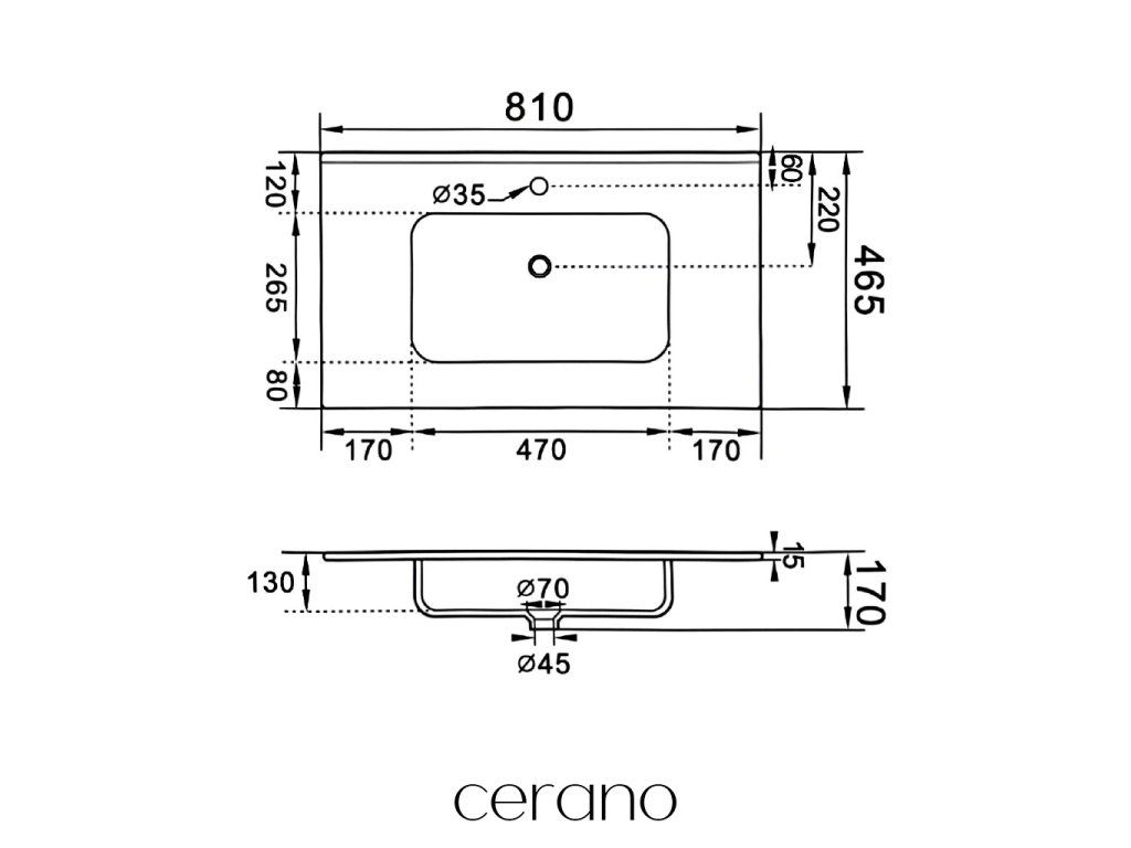 CERANO - Umyvadlo keramické Novo - nábytkové - bílá lesklá - 81x46,5 cm