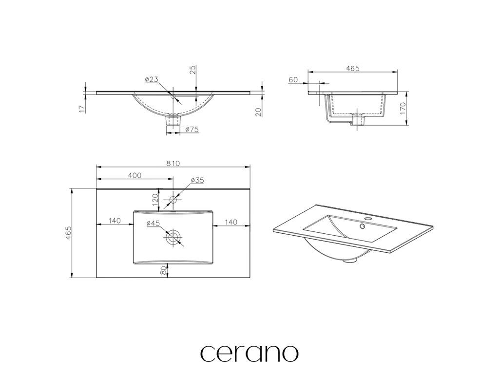 CERANO - Umyvadlo keramické Todo - nábytkové - bílá lesklá - 81x46,5 cm
