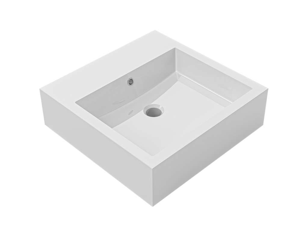 CERANO - Umyvadlo z litého mramoru Esme - s přepadem - bílá lesklá - 45x45x13 cm