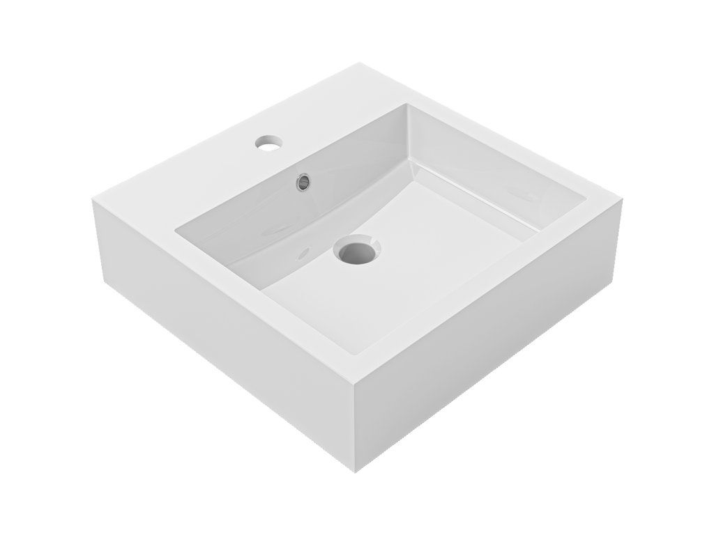 CERANO - Umyvadlo z litého mramoru Esme - s přepadem - bílá lesklá - 45x45 cm