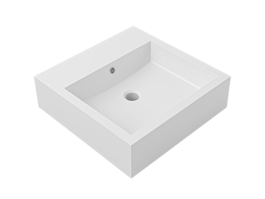 CERANO - Umyvadlo z litého mramoru Esme - s přepadem - bílá matná - 45x45x13 cm