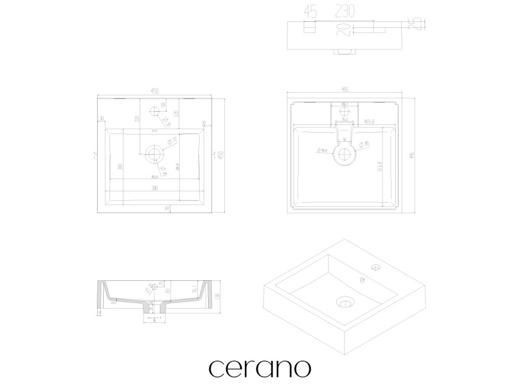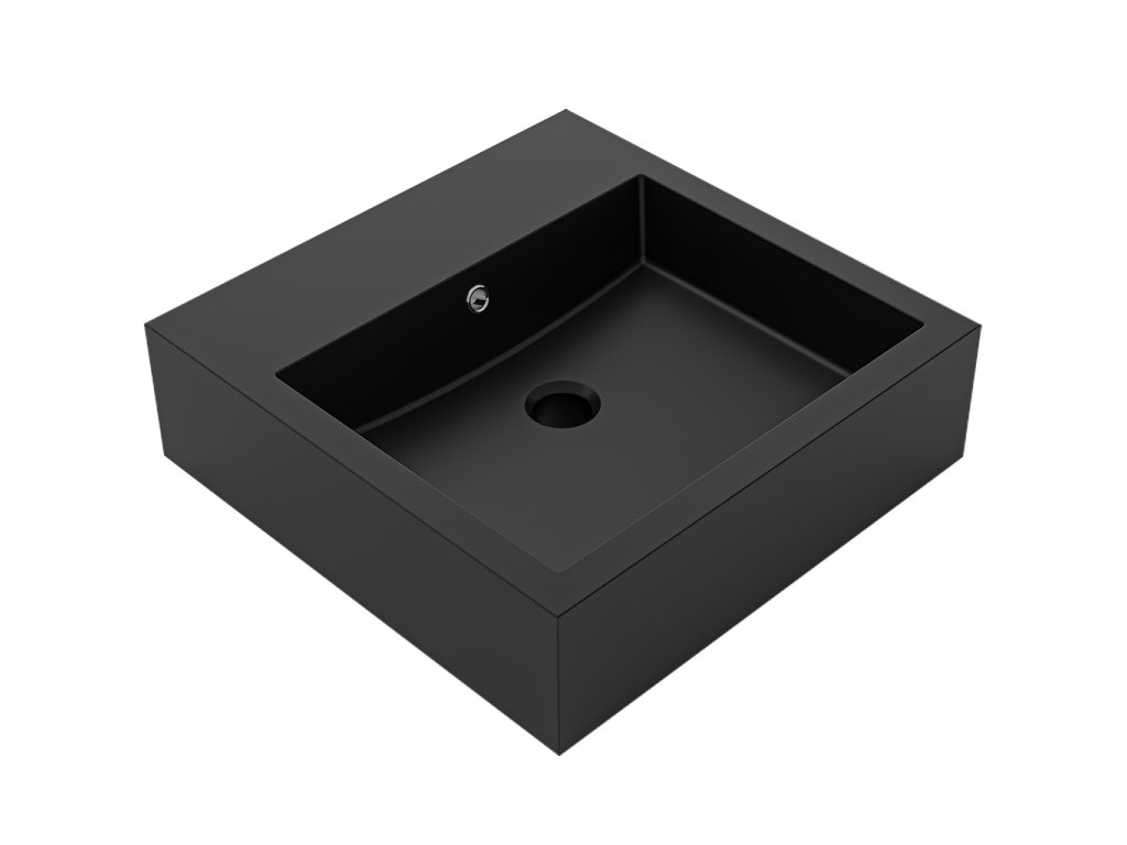 CERANO - Umyvadlo z litého mramoru Esme - s přepadem - černá matná - 45x45x13 cm