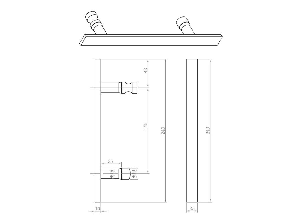 Hranaté madlo velké pro zástěny LEGRO, SIGMA a ONE, chrom