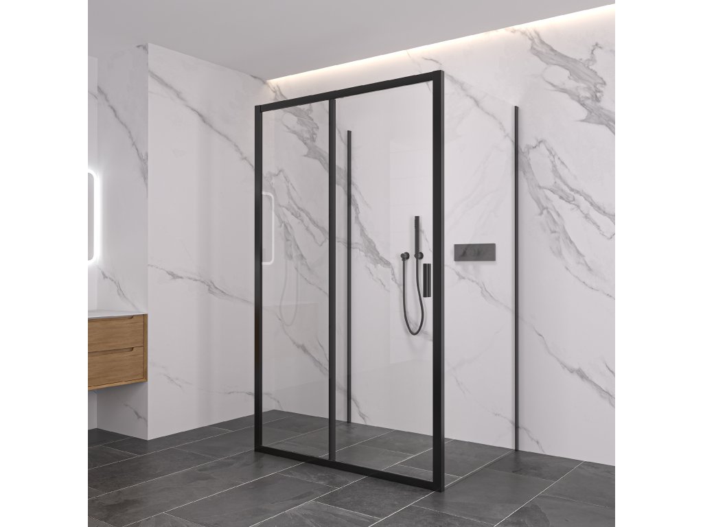 CERANO - Třístěnný sprchový kout Varone LINE U L/P - 6 mm - černá matná, transparentní sklo - 110x80x195 cm - posuvný
