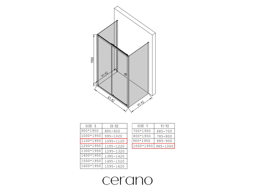 V rámci této série nabízíme širokou škálu rozměrů, abychom uspokojili různé potřeby našich zákazníků. Všechny sprchové kouty, dveře a zástěny značky CERANO jsou plně kompatibilní se sprchovými vaničkami CERANO ve stejných rozměrech, což zajišťuje bezproblémovou instalaci a dokonalé sladění. Sprchový kout lze navíc instalovat flexibilně – buď na odpovídající sprchovou vaničku, nebo přímo na podlahu podle vašich preferencí a možností koupelny.