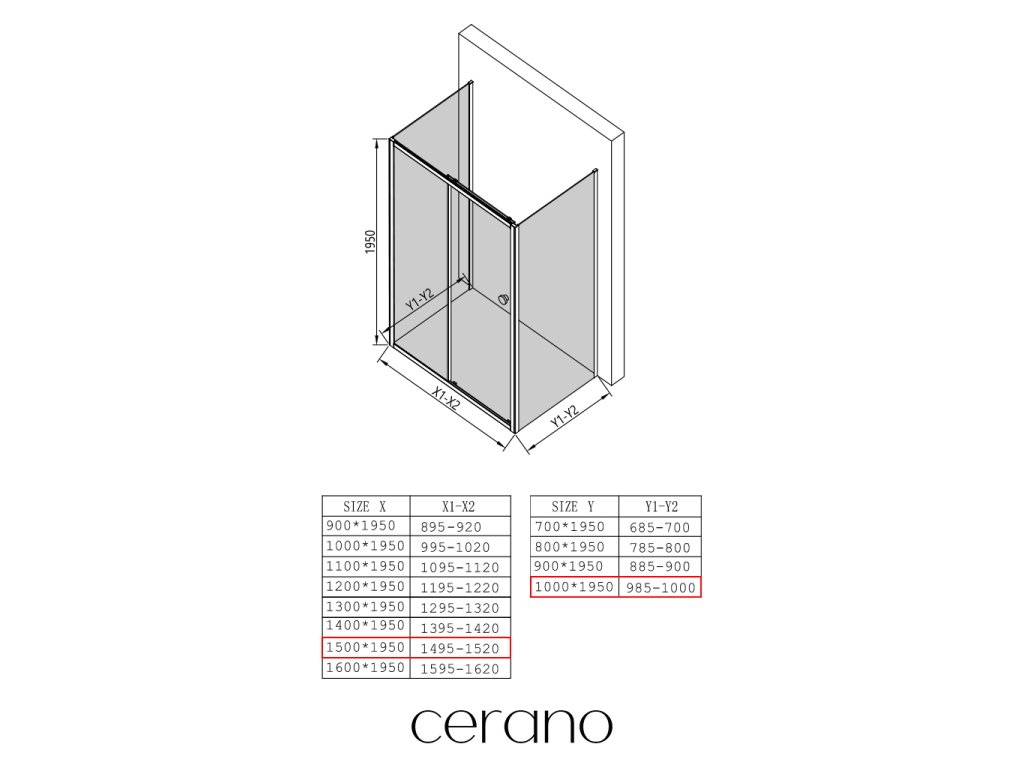V rámci této série nabízíme širokou škálu rozměrů, abychom uspokojili různé potřeby našich zákazníků. Všechny sprchové kouty, dveře a zástěny značky CERANO jsou plně kompatibilní se sprchovými vaničkami CERANO ve stejných rozměrech, což zajišťuje bezproblémovou instalaci a dokonalé sladění. Sprchový kout lze navíc instalovat flexibilně – buď na odpovídající sprchovou vaničku, nebo přímo na podlahu podle vašich preferencí a možností koupelny.