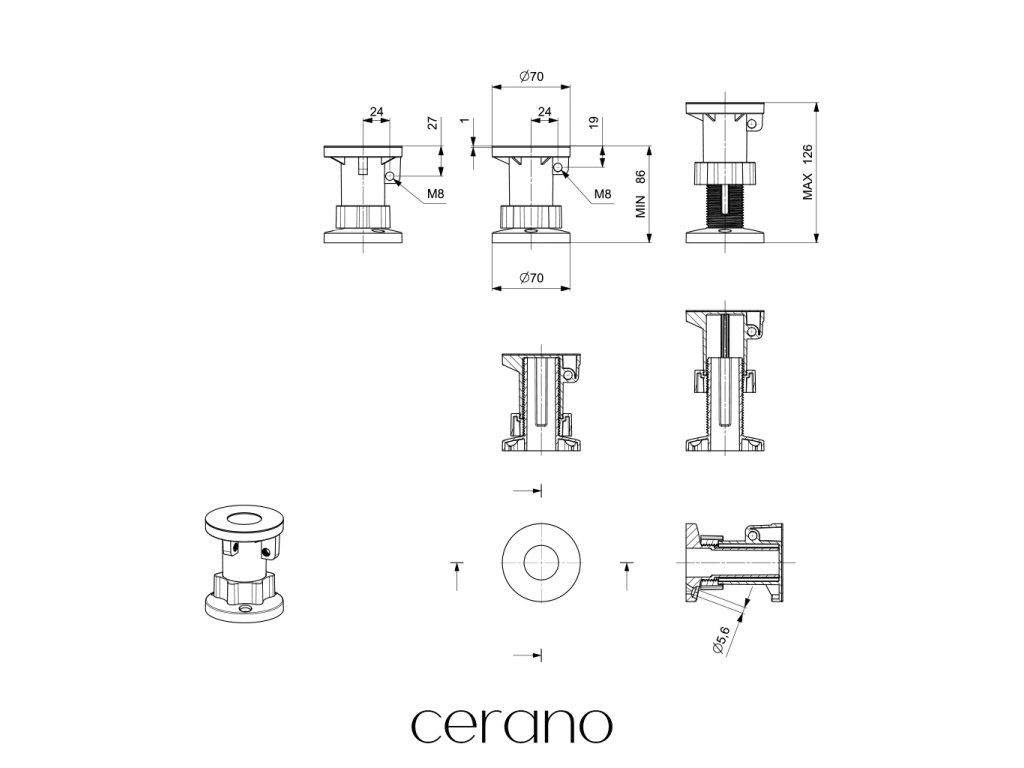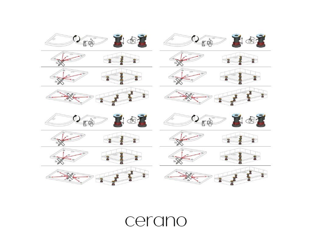 CERANO výškově nastavitelné a samolepicí podpěrné nožky jsou praktickým řešením pro stabilní a přesné usazení sprchových vaniček. Umožňují jednoduché vyrovnání do roviny, rovnoměrné rozložení hmotnosti a zajišťují pevnou a tichou oporu bez nutnosti použití svorníků.