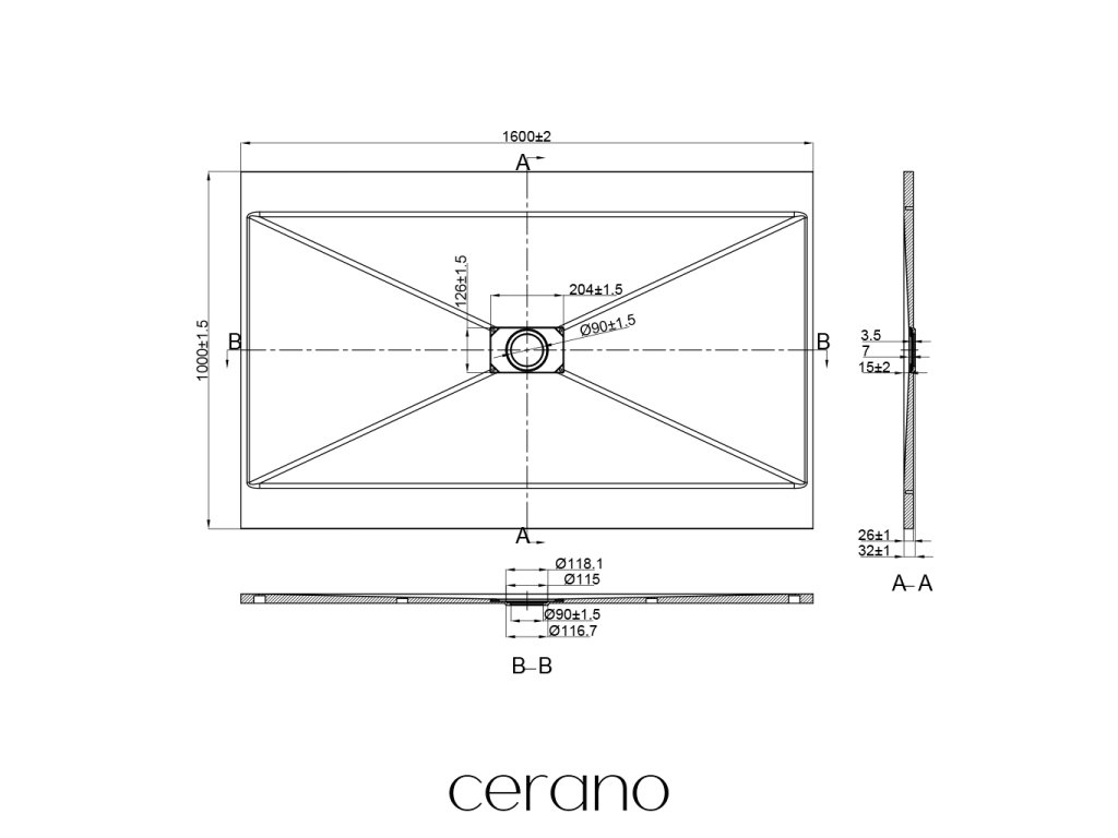 CERANO - Sprchová vanička obdélníková FlexiCut - SMC/minerální kompozit - upravitelná - bílá matná - 160x100x3 cm