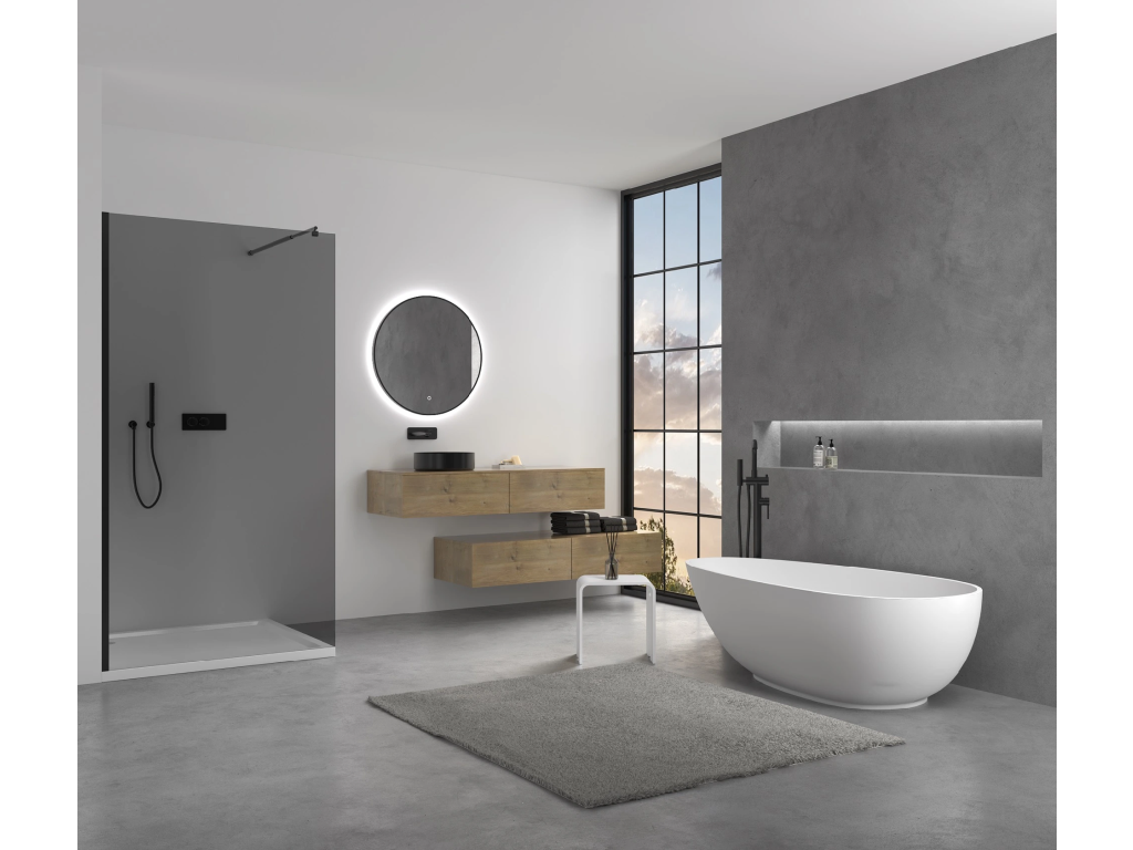 Díky středovému odtoku, vyspádování a pohledovému provedení ze všech stran lze vaničku instalovat na pravou i levou stranu a snadno ji přizpůsobit prostoru i individuálním požadavkům koupelny.
