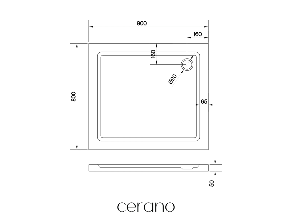 CERANO - Sprchová vanička obdélníková Soto - akrylát - bílá lesklá - 90x80x5 cm - ROZBALENO