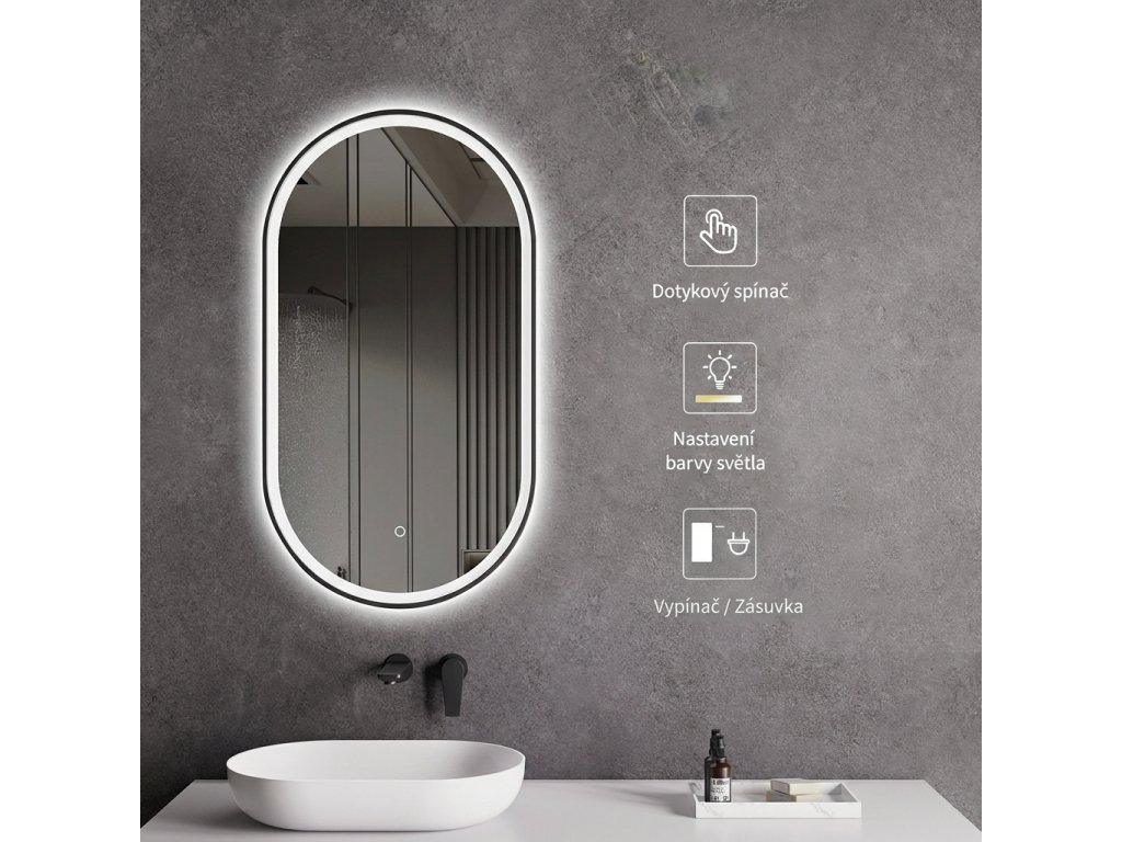 Zrcadlo je vybaveno LED osvětlením s nastavitelnou barvou světla – od 3000 K (teplá) do 6000 K (Neutrální). Přepínání barev jednoduše ovládáte dotykovým tlačítkem na ploše zrcadla. Poskytuje intenzivní a jasné světlo pro detailní péči i příjemné, jemné osvětlení pro relaxaci. Díky širokému rozsahu teploty barev tak snadno přizpůsobíte atmosféru aktuální potřebě.