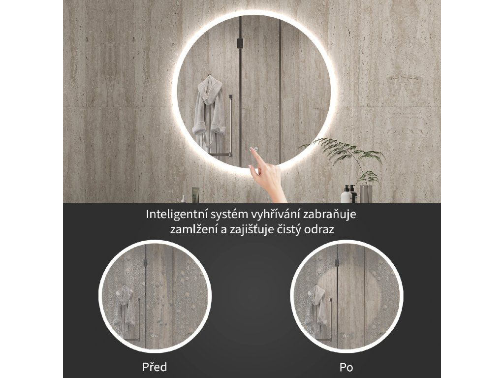 Zrcadlo je vybaveno LED osvětlením s nastavitelnou barvou světla – od 3000 K (teplá) do 6000 K (Neutrální). Přepínání barev jednoduše ovládáte dotykovým tlačítkem na ploše zrcadla. Poskytuje intenzivní a jasné světlo pro detailní péči i příjemné, jemné osvětlení pro relaxaci. Díky širokému rozsahu teploty barev tak snadno přizpůsobíte atmosféru aktuální potřebě.