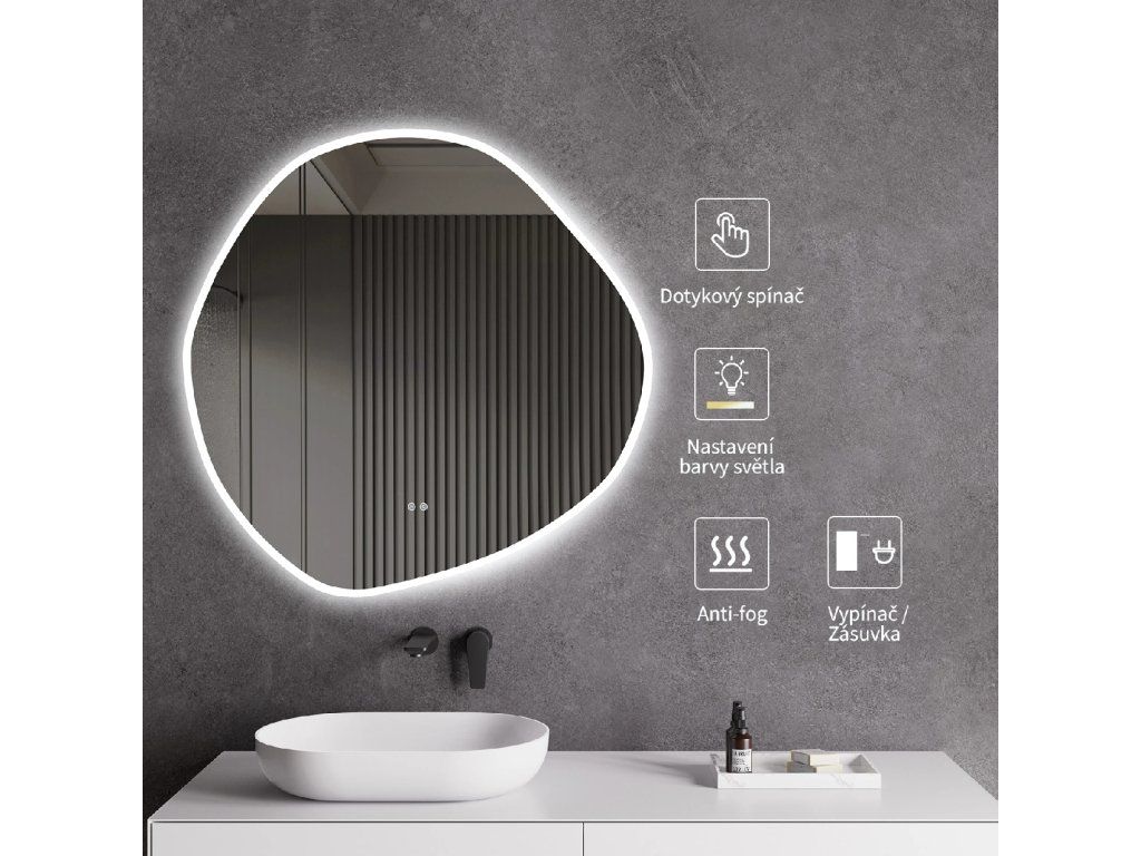 Zrcadlo je vybaveno LED osvětlením s nastavitelnou barvou světla – od 2800 K (teplá) do 6000 K (Neutrální). Přepínání barev jednoduše ovládáte dotykovým tlačítkem na ploše zrcadla. Poskytuje intenzivní a jasné světlo pro detailní péči i příjemné, jemné osvětlení pro relaxaci. Díky širokému rozsahu teploty barev tak snadno přizpůsobíte atmosféru aktuální potřebě.