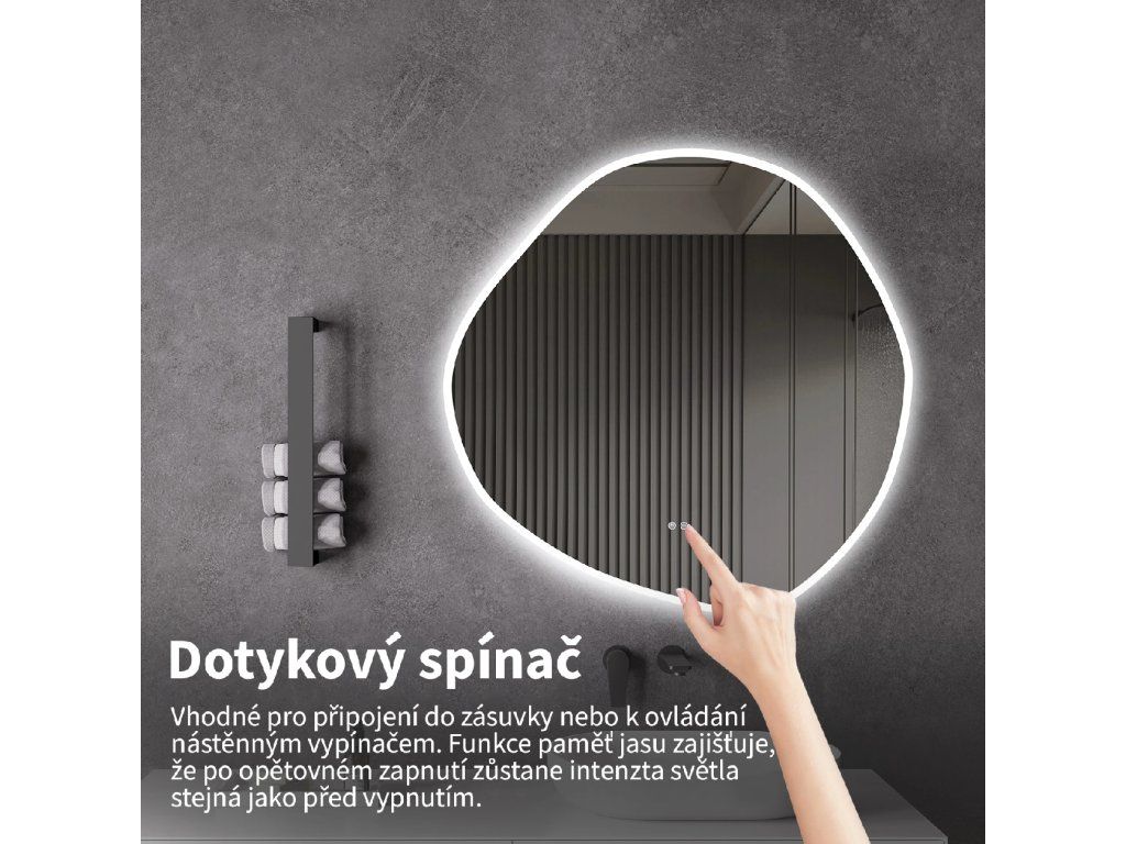 Osvětlení zrcadla lze snadno a pohodlně zapnout dotykem přepínače na panelu zrcadla. Umožňuje rychlé nastavení osvětlení bez nutnosti sahat po vzdálenějším tradičním vypínači.