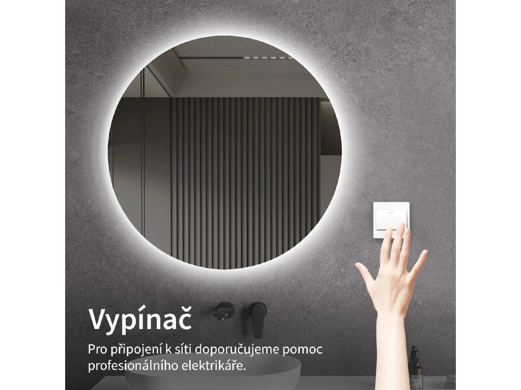 Osvětlení zrcadla lze zapnout skrze vypínač na zdi. Je nutné napojit jej přímo na domácí elektrickou síť. Před instalací doporučujeme obrátit se na kvalifikovaného elektrikáře, který zajistí správné a bezpečné připojení.