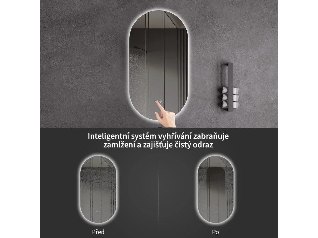 Osvětlení zrcadla lze snadno a pohodlně zapnout dotykem přepínače na panelu zrcadla. Umožňuje rychlé nastavení osvětlení bez nutnosti sahat po vzdálenějším tradičním vypínači.