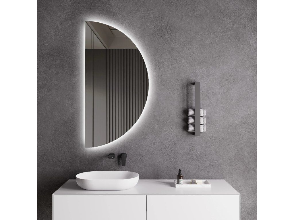 Zrcadlo je vybaveno zadním LED podsvícením, které svítí směrem ke stěně a vytváří jemný světelný efekt po celém obvodu. Rozptýlené světlo je vyzařováno z prostoru mezi rámem a zrcadlem, neoslňuje, zajišťuje rovnoměrné a příjemné nasvětlení prostoru koupelny.