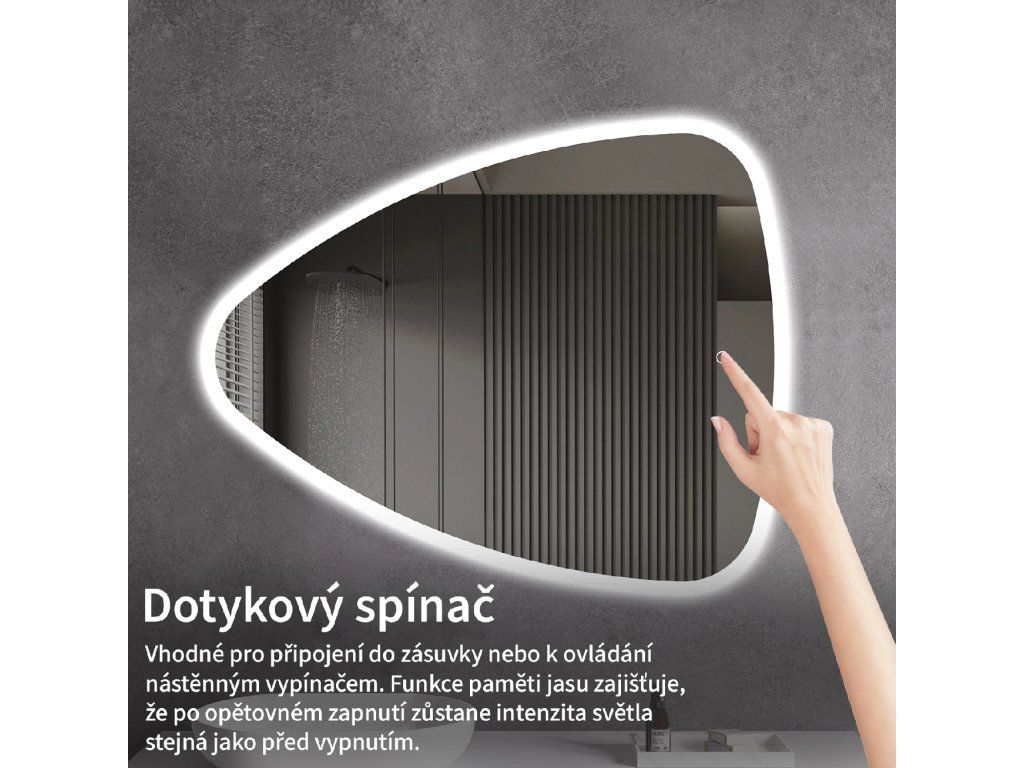 Osvětlení zrcadla lze snadno a pohodlně zapnout dotykem přepínače na panelu zrcadla. Umožňuje rychlé nastavení osvětlení bez nutnosti sahat po vzdálenějším tradičním vypínači.