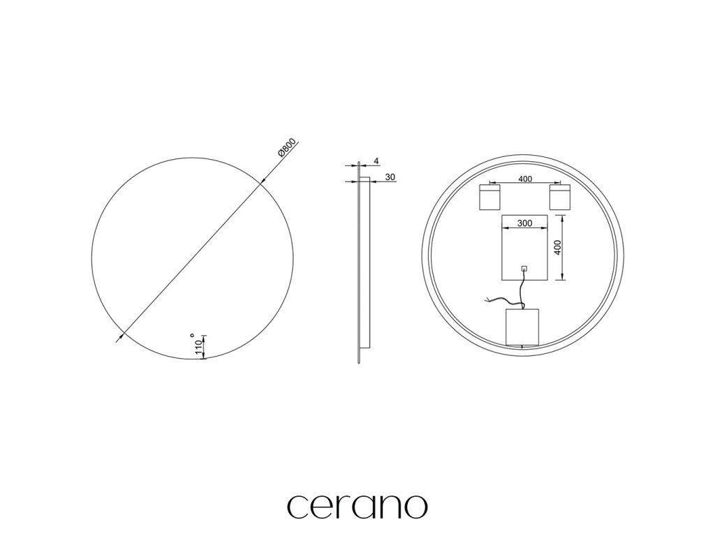 Na zadní straně zrcadla je připravený konektor pro připojení ke zdroji. Je to praktické řešení, které umožňuje skrýt kabely za zrcadlem, což zajišťuje estetický a upravený vzhled koupelny.