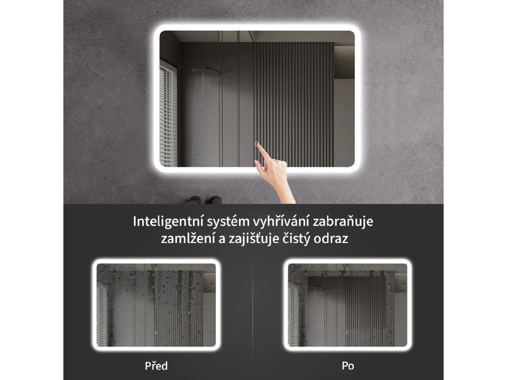 Zrcadlo je vybaveno LED osvětlením s nastavitelnou barvou světla – od 3000 K (teplá) do 6000 K (Neutrální). Přepínání barev jednoduše ovládáte dotykovým tlačítkem na ploše zrcadla. Poskytuje intenzivní a jasné světlo pro detailní péči i příjemné, jemné osvětlení pro relaxaci. Díky širokému rozsahu teploty barev tak snadno přizpůsobíte atmosféru aktuální potřebě.