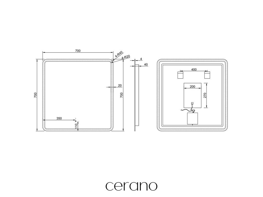 Na zadní straně zrcadla je připravený konektor pro připojení ke zdroji. Je to praktické řešení, které umožňuje skrýt kabely za zrcadlem, což zajišťuje estetický a upravený vzhled koupelny.