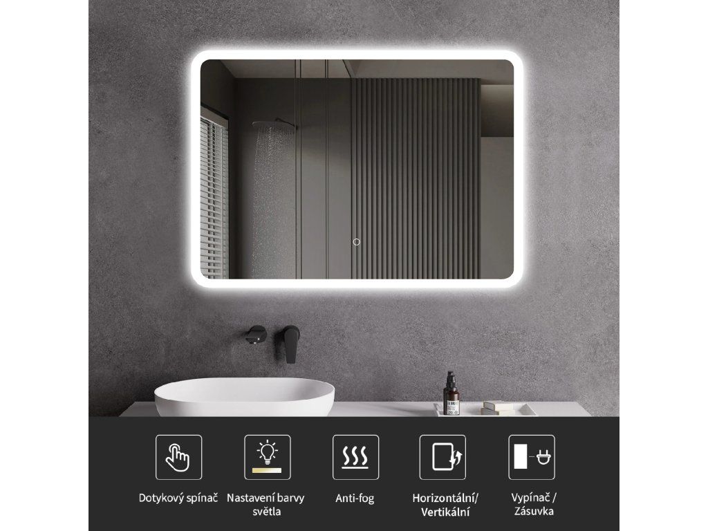Zrcadlo je vybaveno LED osvětlením s nastavitelnou barvou světla – od 3000 K (teplá) do 6000 K (Neutrální). Přepínání barev jednoduše ovládáte dotykovým tlačítkem na ploše zrcadla. Poskytuje intenzivní a jasné světlo pro detailní péči i příjemné, jemné osvětlení pro relaxaci. Díky širokému rozsahu teploty barev tak snadno přizpůsobíte atmosféru aktuální potřebě.