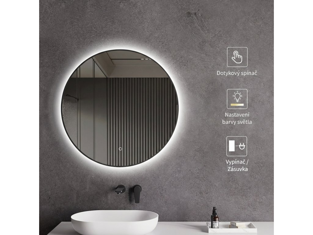 Zrcadlo je vybaveno LED osvětlením s nastavitelnou barvou světla – od 3000 K (teplá) do 6000 K (Neutrální). Přepínání barev jednoduše ovládáte dotykovým tlačítkem na ploše zrcadla. Poskytuje intenzivní a jasné světlo pro detailní péči i příjemné, jemné osvětlení pro relaxaci. Díky širokému rozsahu teploty barev tak snadno přizpůsobíte atmosféru aktuální potřebě.
