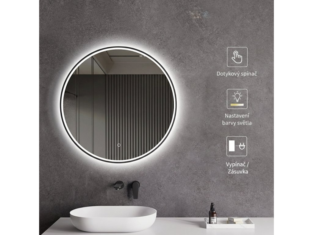 Zrcadlo je vybaveno LED osvětlením s nastavitelnou barvou světla – od 3000 K (teplá) do 6000 K (Neutrální). Přepínání barev jednoduše ovládáte dotykovým tlačítkem na ploše zrcadla. Poskytuje intenzivní a jasné světlo pro detailní péči i příjemné, jemné osvětlení pro relaxaci. Díky širokému rozsahu teploty barev tak snadno přizpůsobíte atmosféru aktuální potřebě.
