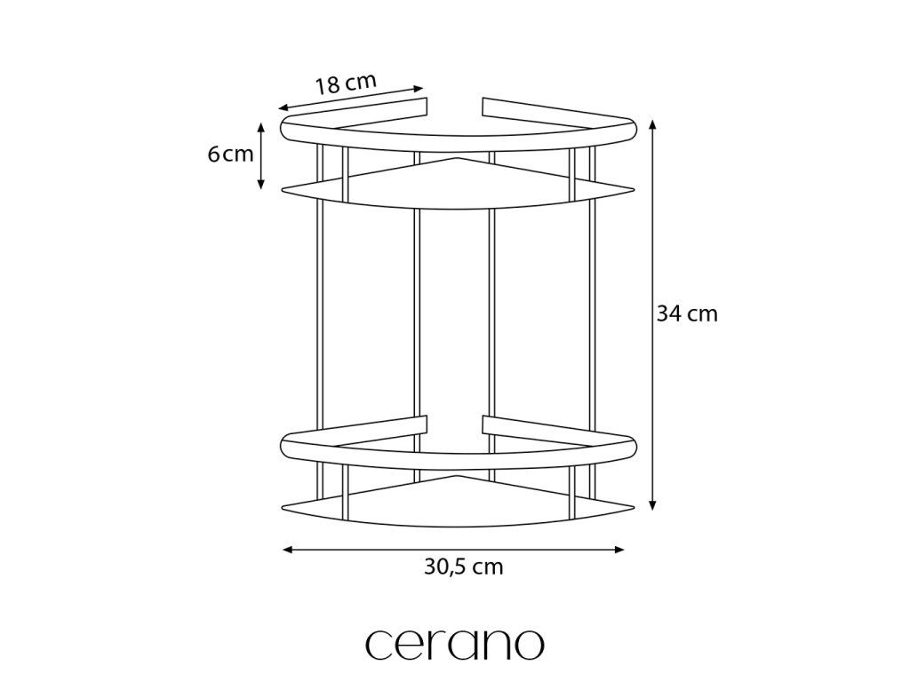 Díky svému chytrému a zároveň elegantnímu provedení se rohová police značky Cerano skvěle hodí do jakéhokoli sprchového koutu a pomáhá udržet vše přehledně uspořádané. Pro dokonalý vzhled ji můžete kombinovat s dalšími koupelnovými doplňky ve stejném designu.