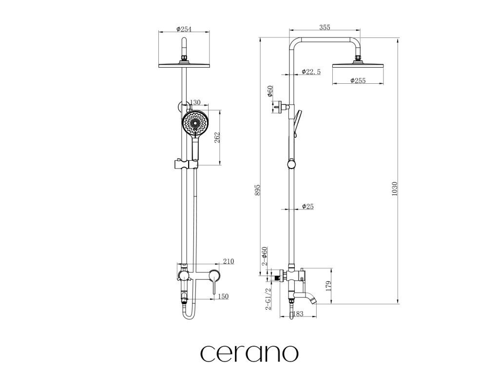 CERANO - Sprchový nástěnný sloup Ennio - vanová otočná baterie - chrom