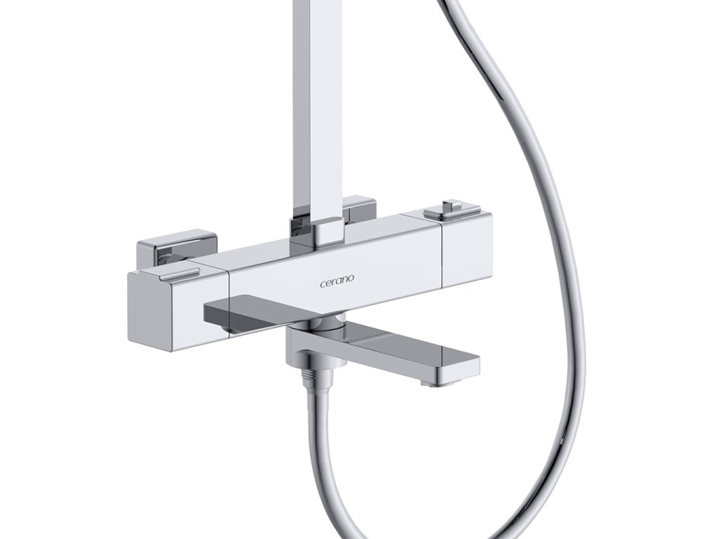 CERANO - Sprchový nástěnný sloup Velar - termostatická vanová otočná baterie - chrom