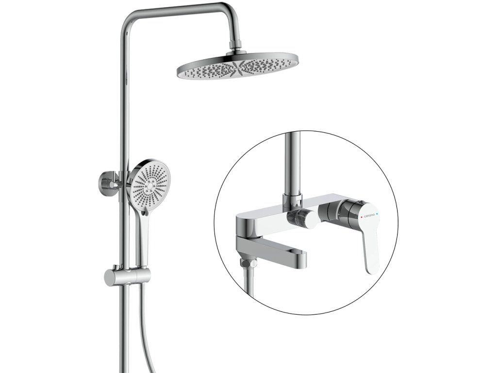 CERANO - Sprchový nástěnný sloup Velea - vanová otoná baterie - chrom - 78-123 cm
