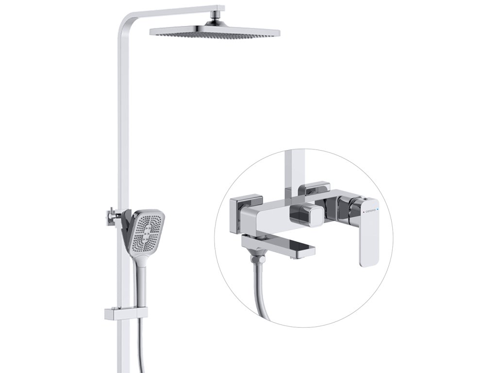CERANO - Sprchový nástěnný sloup Zenira - vanová otočná baterie - chrom