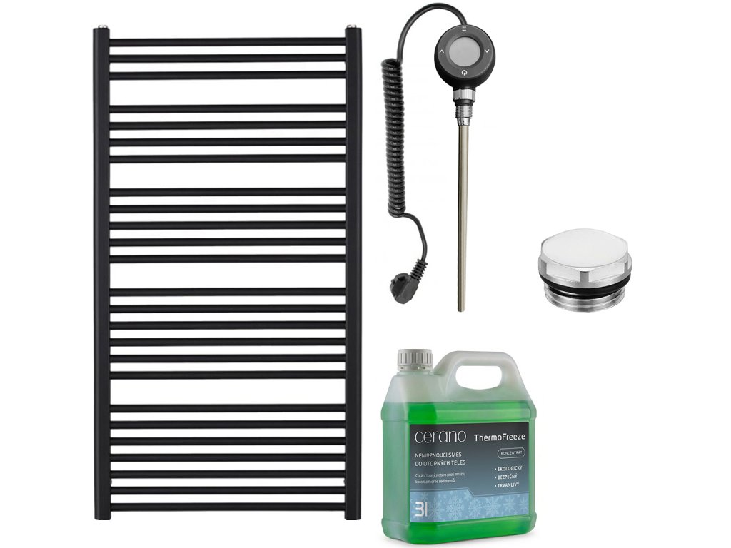CERANO - Koupelnový elektrický radiátorový set Alberto - WIFI - 600W - černá matná - 1180x650 mm