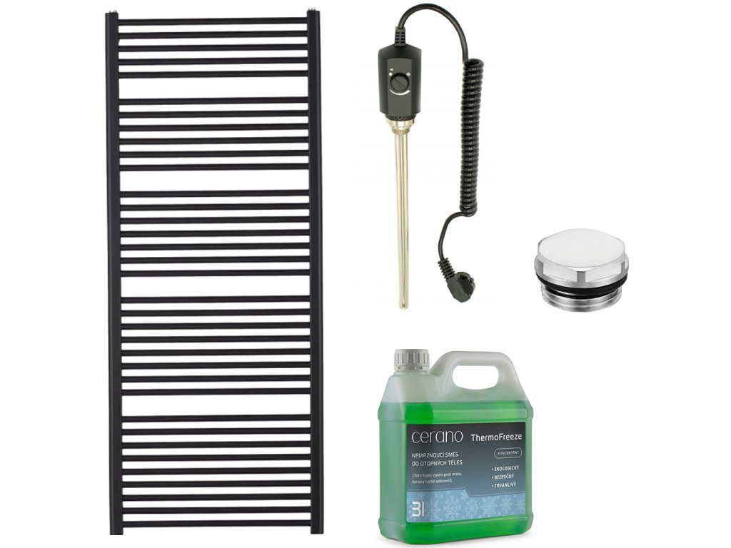 CERANO - Koupelnový elektrický radiátorový set Alberto - 900W - černá matná - 1660x650 mm