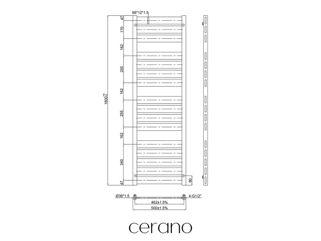 Standartní připojení radiátoru je 1/2" , což zajišťuje kompatibilitu s ventily a přípojnými sadami Cerano ,i od jiných výrobců. Ujistěte se, že všechny součásti odpovídají tomuto průměru, aby byl zajištěn bezpečný a efektivní provoz.