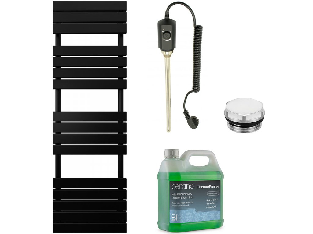 CERANO - Koupelnový elektrický radiátorový set Claude - 900W - černá matná - 1600x500 mm