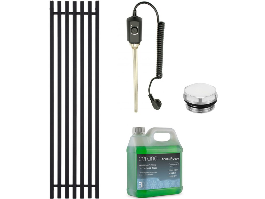 CERANO - Koupelnový elektrický radiátorový set Francesco - 900W - černá matná - 1500x390 mm