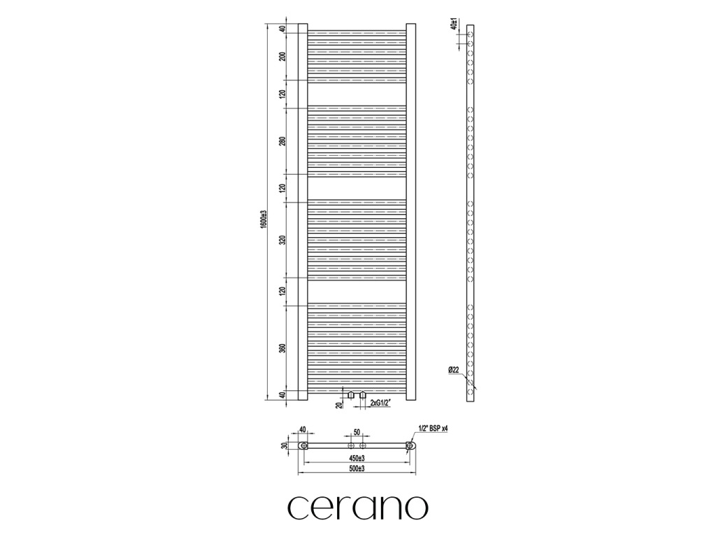Standartní připojení radiátoru je 1/2" , což zajišťuje kompatibilitu s ventily a přípojnými sadami Cerano ,i od jiných výrobců. Ujistěte se, že všechny součásti odpovídají tomuto průměru, aby byl zajištěn bezpečný a efektivní provoz.
