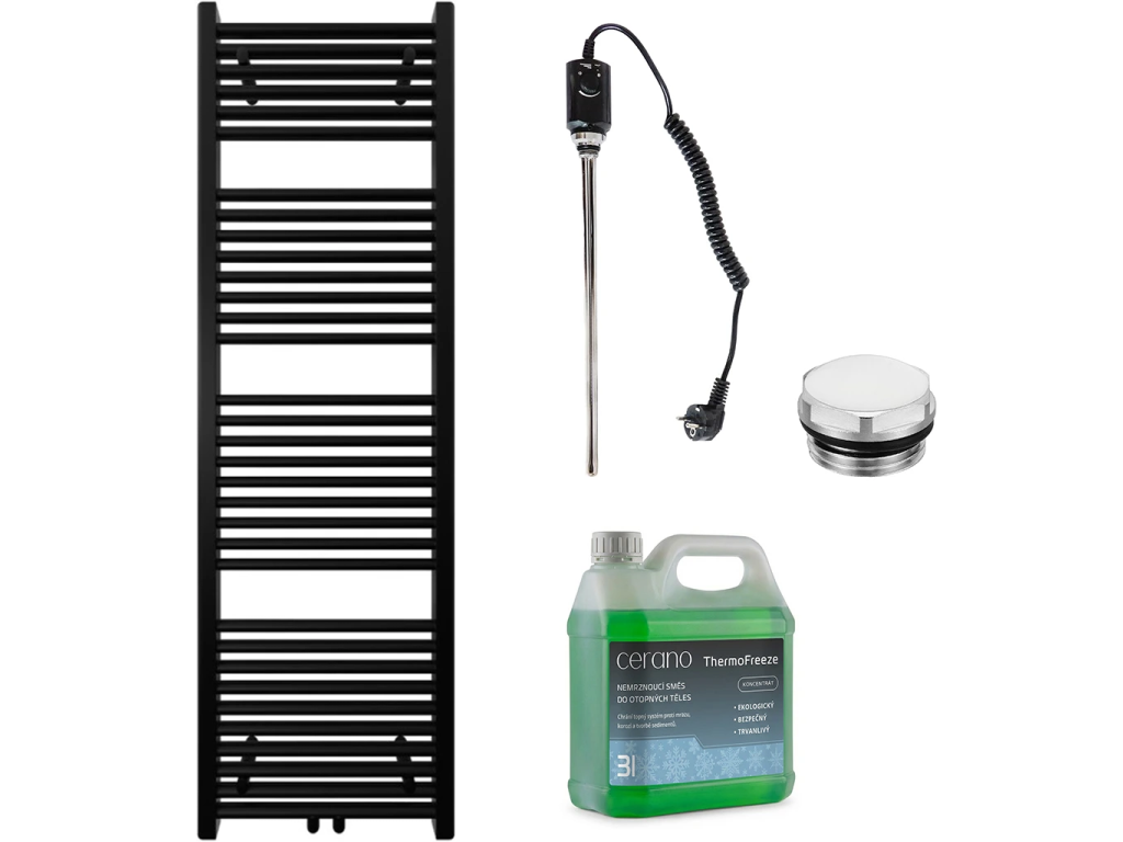 CERANO - Koupelnový elektrický radiátorový set Lincoln - 300W - černá matná - 1600x500 mm