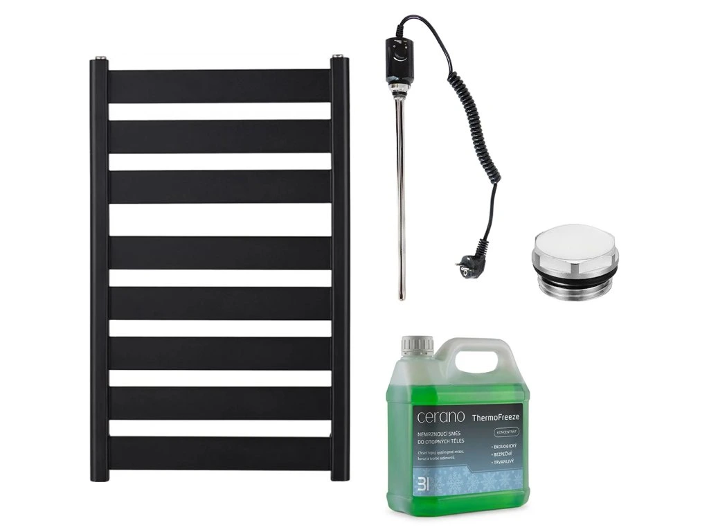 CERANO - Koupelnový elektrický radiátorový set Marco - 600W - černá matná - 920x550 mm