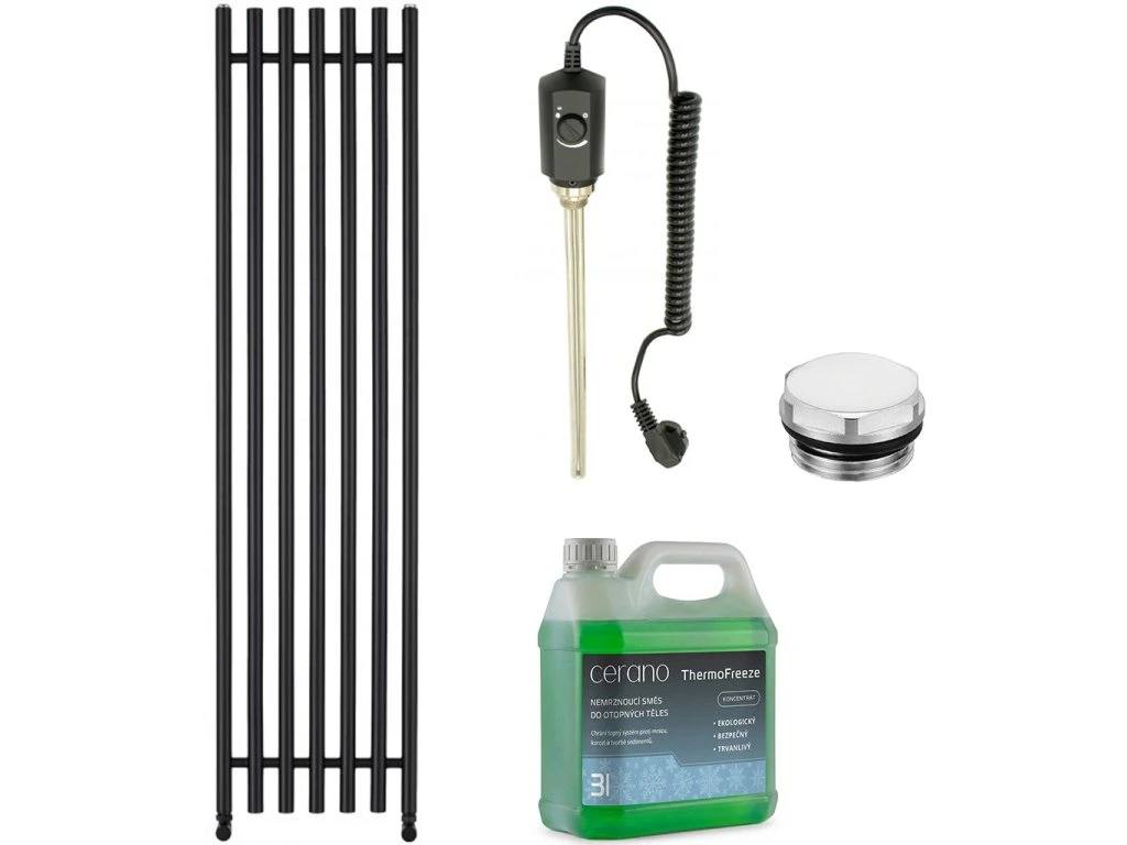 CERANO - Koupelnový elektrický radiátorový set Valerio - 900W - černá matná - 1560x390 mm