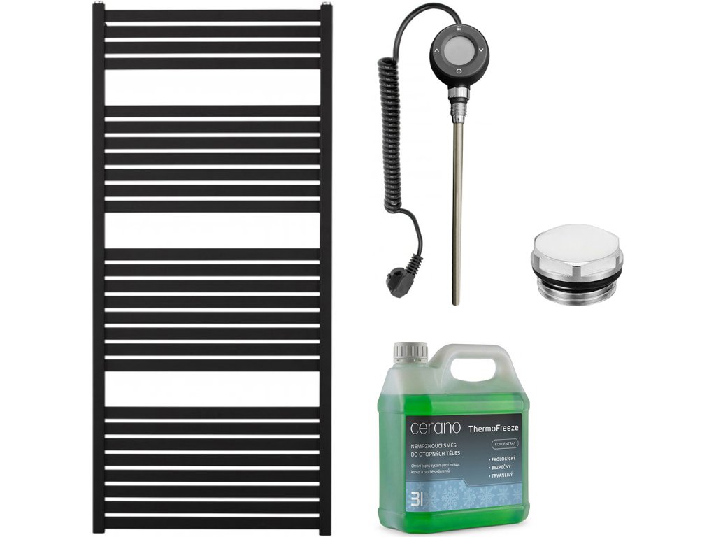 CERANO - Koupelnový elektrický radiátorový set Vincenzo - WIFI - 600W - černá matná - 1330x600 mm