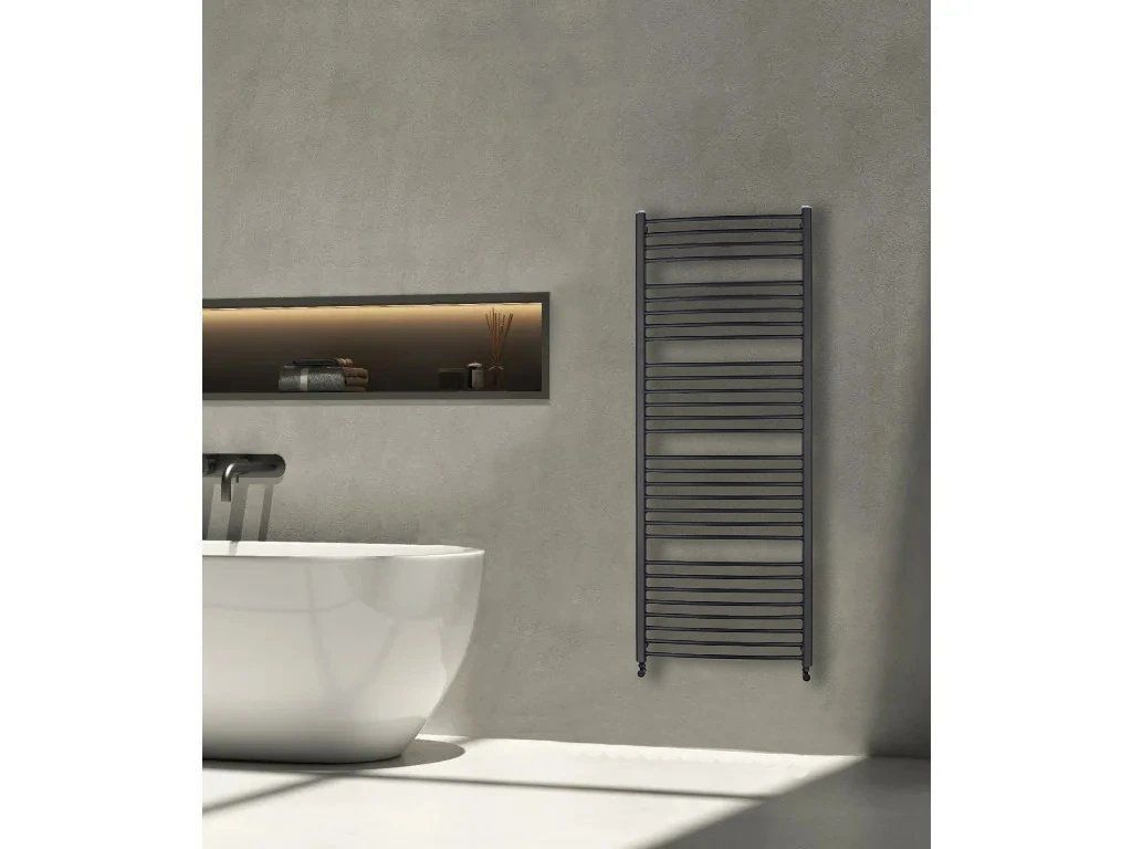 CERANO - Koupelnový radiátorový set Stefano - kombinované vytápění, termo tyč - boční jednobodové připojení - 943W - černá matná - 1710x650 mm