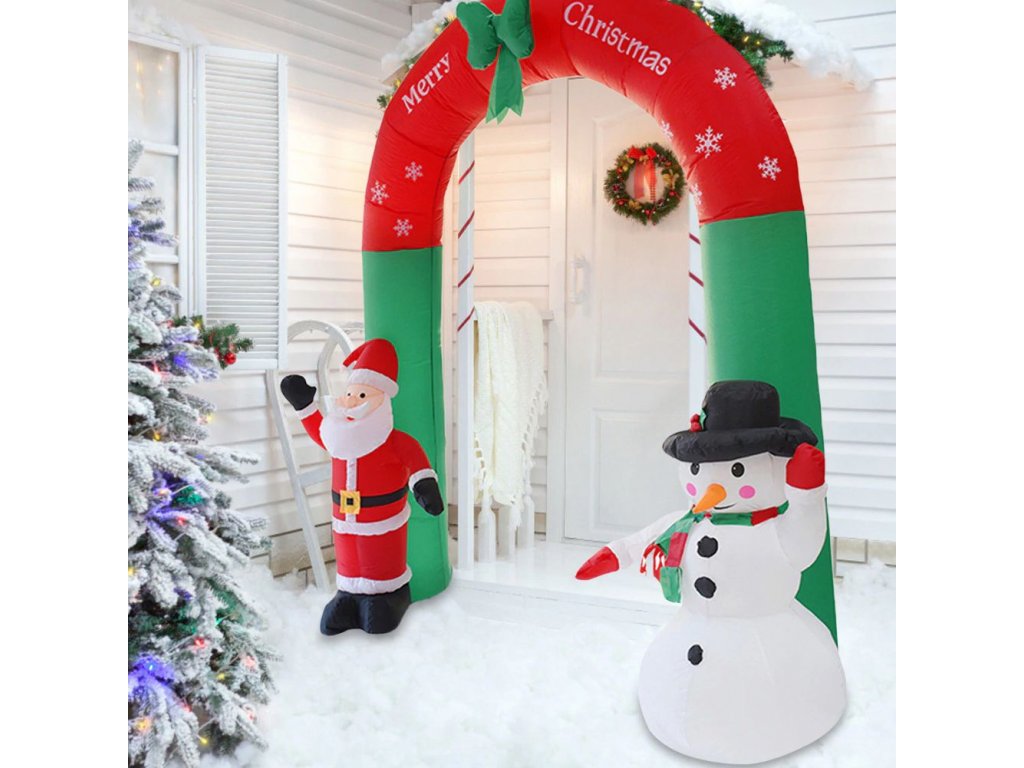 Vánoční oblouk je skvělým doplňkem do vašeho interiéru. Je vyroben z kvalitního materiálu. Oblouk má zabudovaný kompresor, který jej rychle naplní vzduchem. Další výhodou produktu jsou vestavěné LED diody, které osvětlují střed produktu. Oblouk zůstane viditelný i po setmění. Perfektní pro vnitřní i venkovní použití.